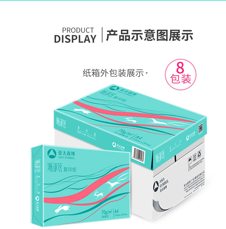 亚太森博 派部落70g A4复印纸木浆打印纸 500张/包 8包/箱(4000张)(百旺系列)