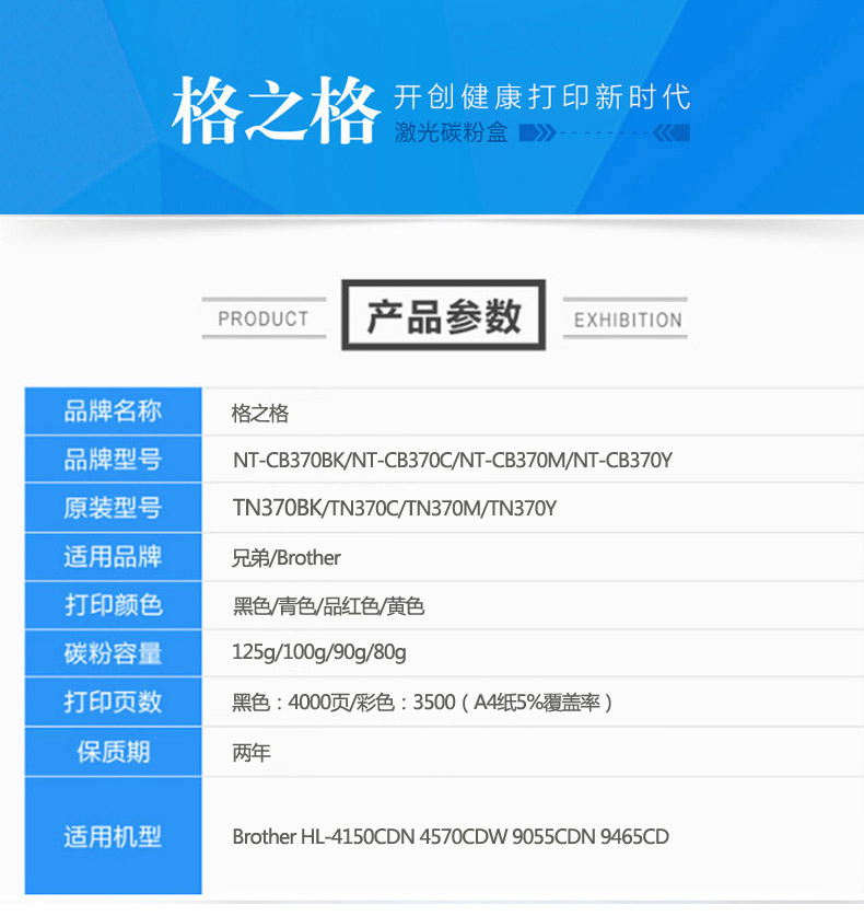 格之格 NT-CB370BK 黑色 粉盒 适用于HL-4150CDN/HL-4570CDW/DCP-9055CDN/MFC-9465CDN