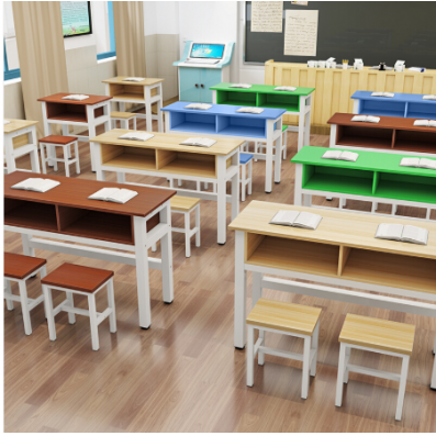 笔友 学校课桌椅 双人桌120*40*74+2把凳子