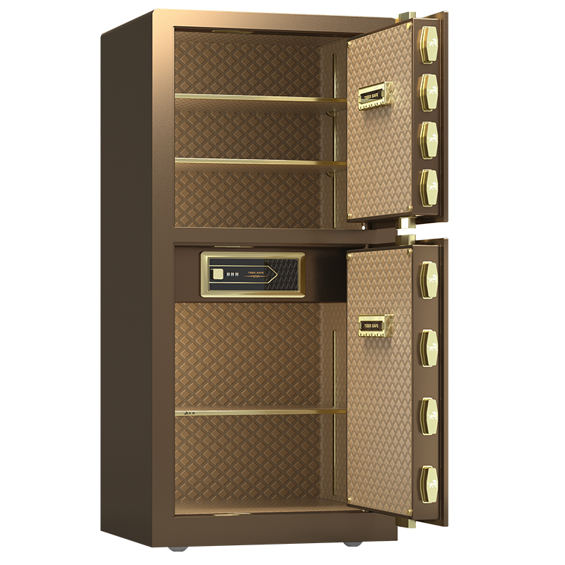 虎牌 保险柜保险箱150双门双锁型主钥匙+密码+指纹+WIFI开启 黑色/咖色/金色可选