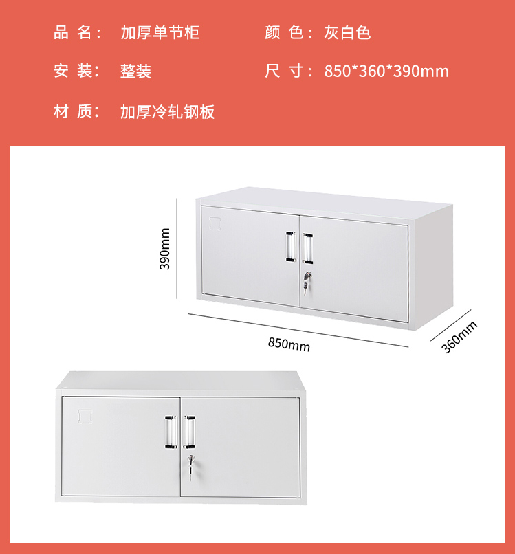 悦山 单节柜文件柜钢制资料柜储物铁皮柜850*360*390mm