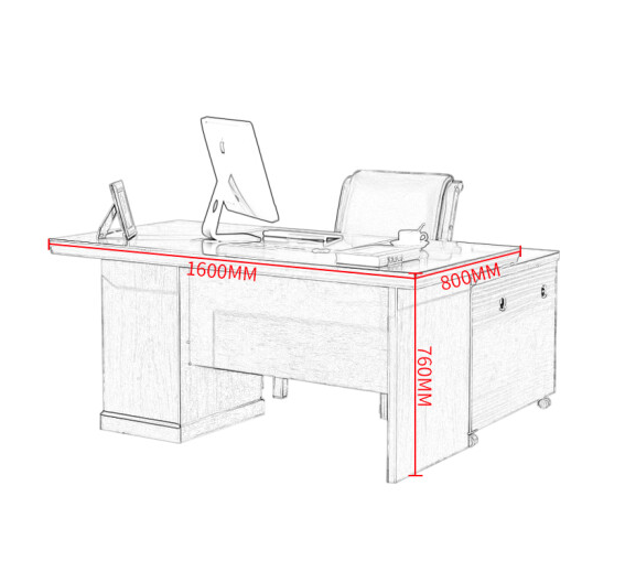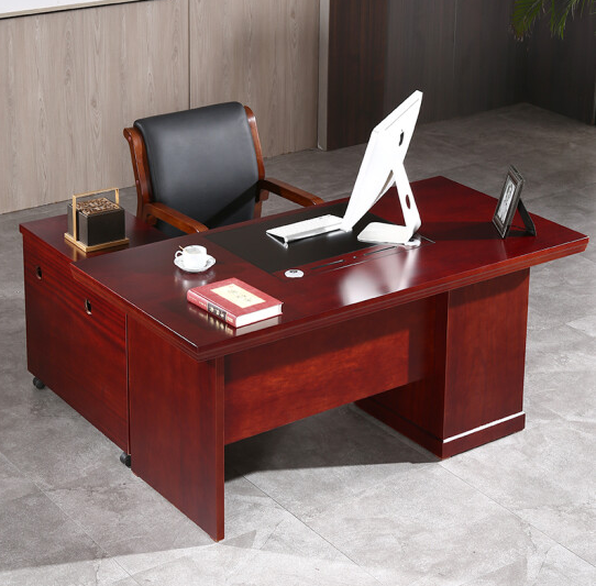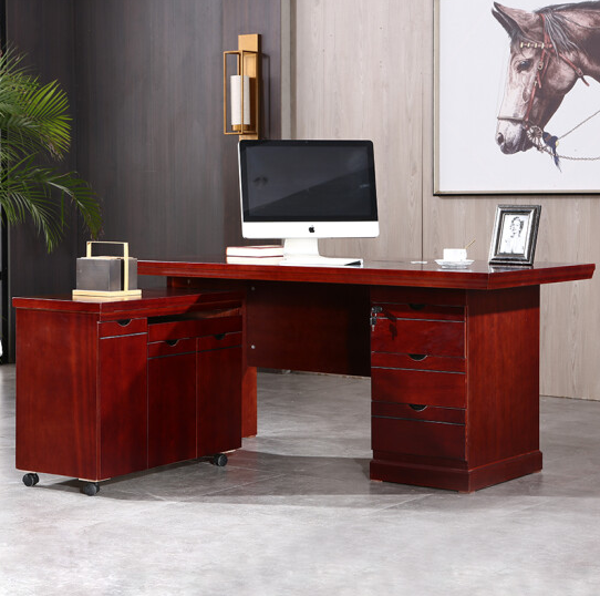 笔友 办公桌贴木皮油漆桌单人位1.6米含侧柜