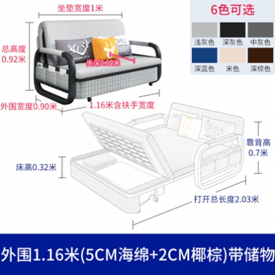 沙发床外围1.16米(5cm海绵+2cm椰棕) 带储物