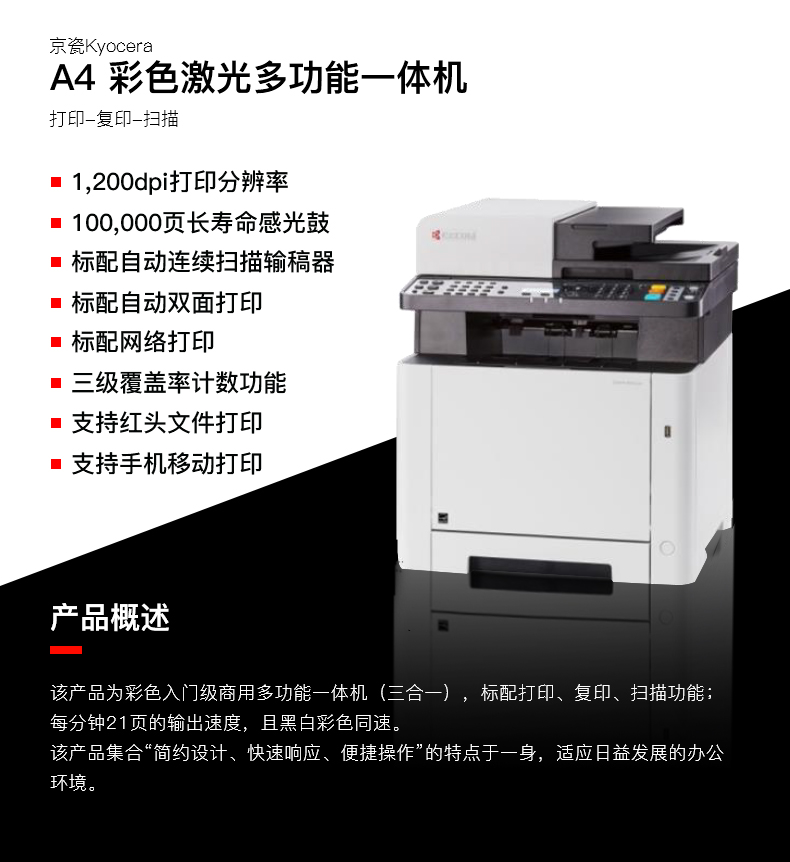 商品品牌:京瓷/KYOCERA 商品货号:M5021cdn 商品库存:100