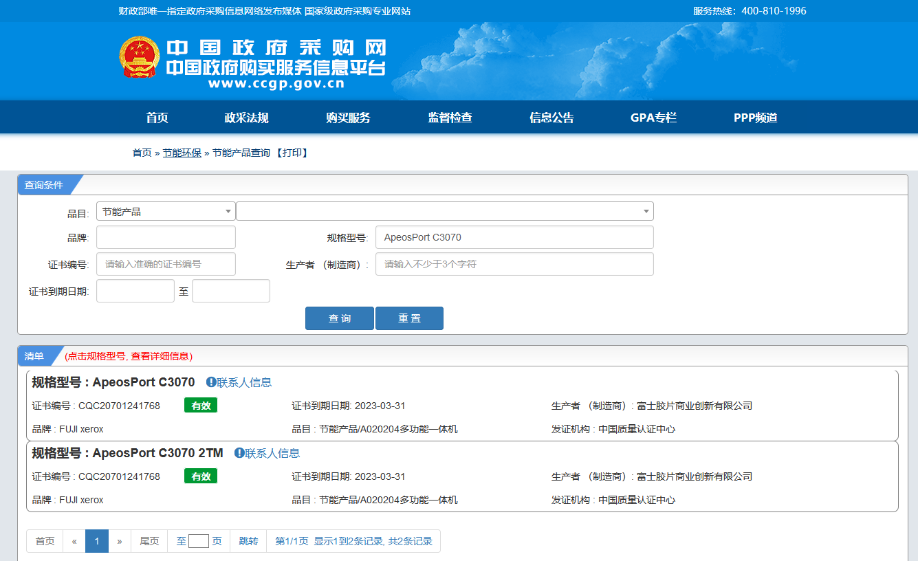 | 型号 | ApeosPort C3070 CPS 2Tray+B3装订器 |
