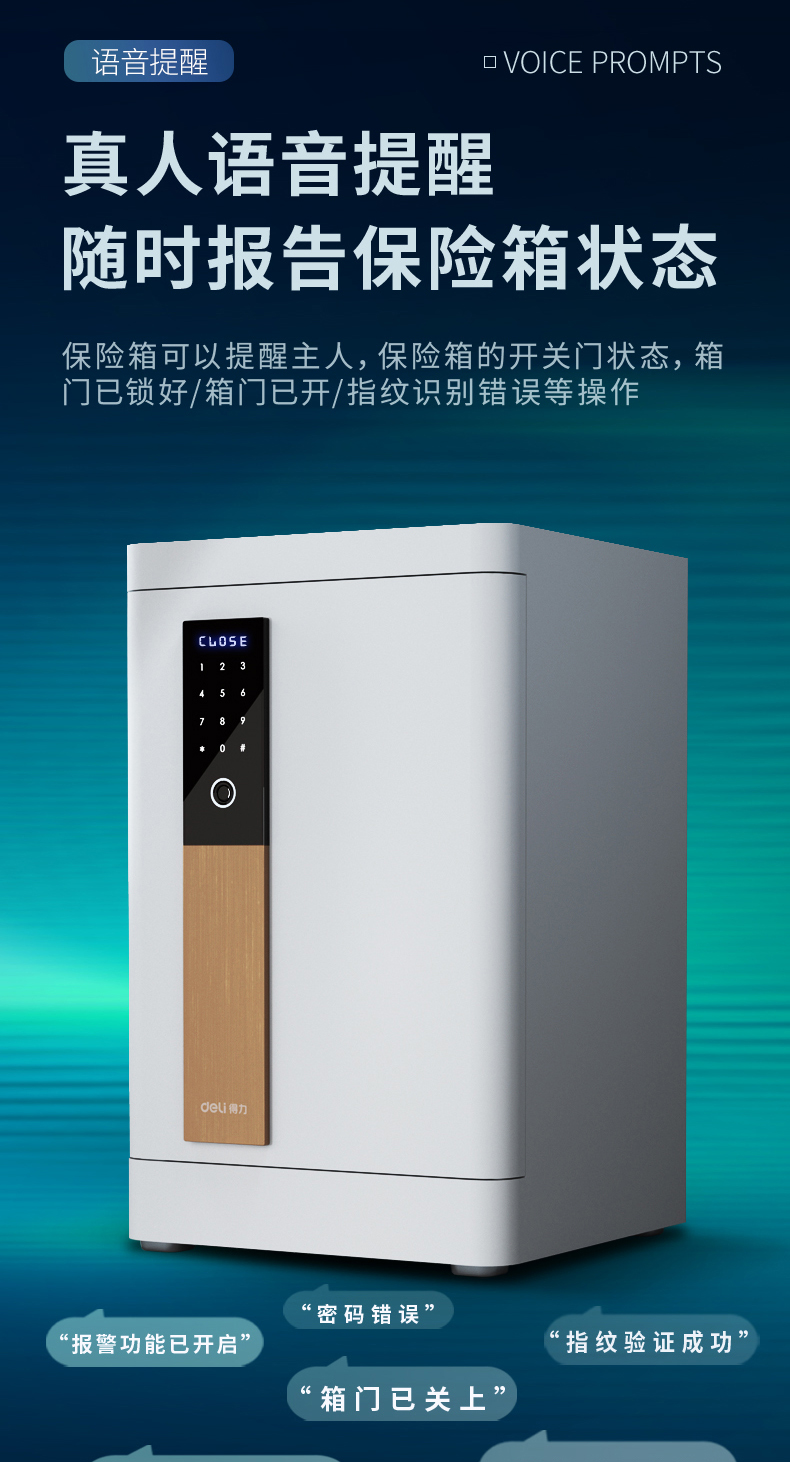 得力(deli)保险柜 高60CM指纹+密码双重防盗保管柜 自动开关门 家用保险保管箱床头柜 格雅27316