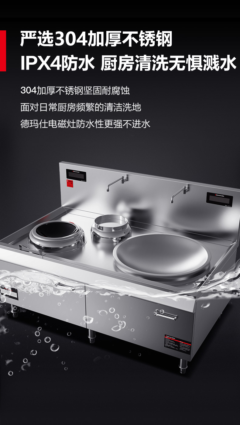 德玛仕(DEMASHI)大功率商用电磁炉大锅灶学校单位食堂厨房设备 小炒加大炒组合灶HW-DXC1530-01(304材质)