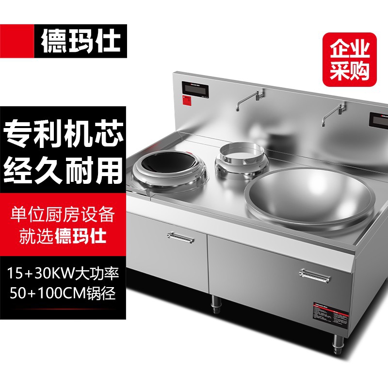 德玛仕(DEMASHI)大功率商用电磁炉大锅灶学校单位食堂厨房设备 小炒加大炒组合灶HW-DXC1530-01(201材质)