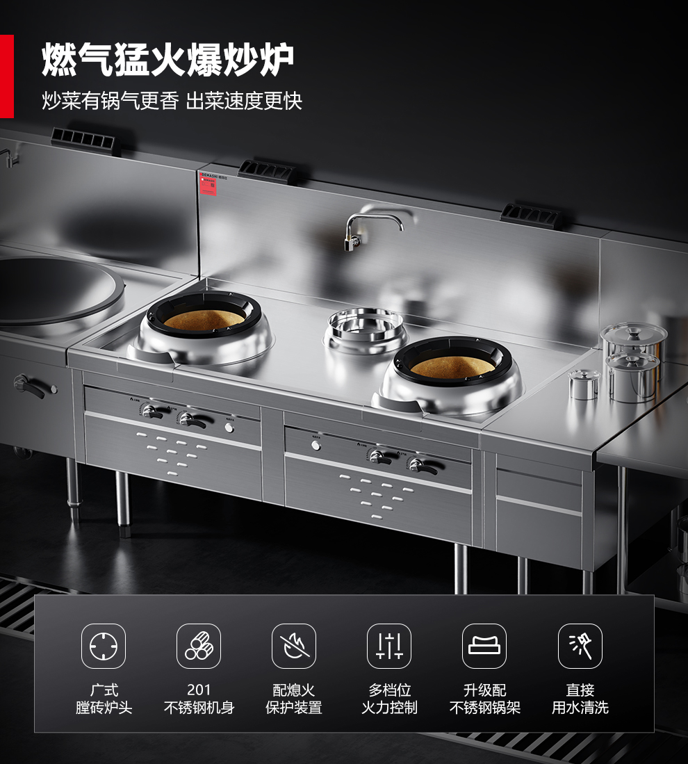 德玛仕(DEMASHI)商用燃气大锅灶 双头小炒单位学校猛火炒菜灶炉台具【液化气】特征R5-C3/1