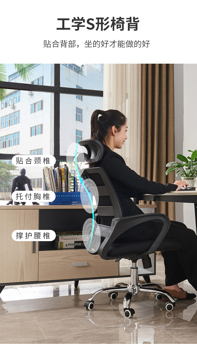 电脑椅办公椅子老板椅会议椅培训椅人体工学椅靠背家用可逍遥旋转椅 海绵坐垫黑色标准款