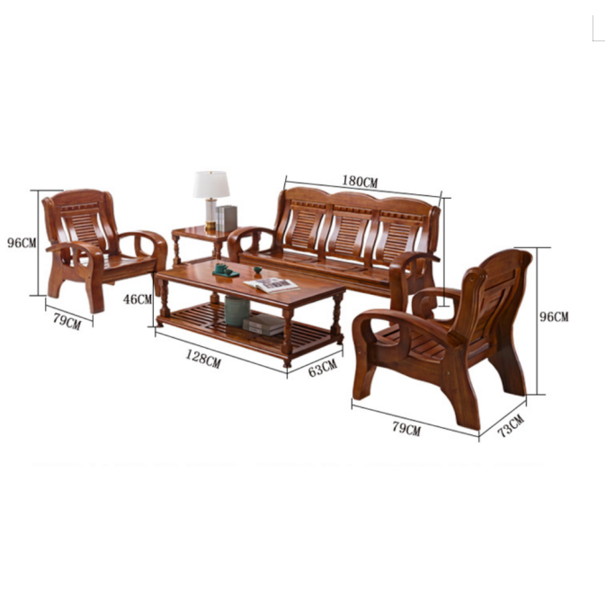 实木 沙发套装 3+1+1 三人位 1800*790*960mm 单人位 960*730*790mm 长茶几 1280*630*460mm