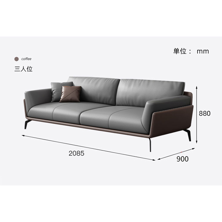办公沙发会客简约三人位沙发 2085*900*880mm