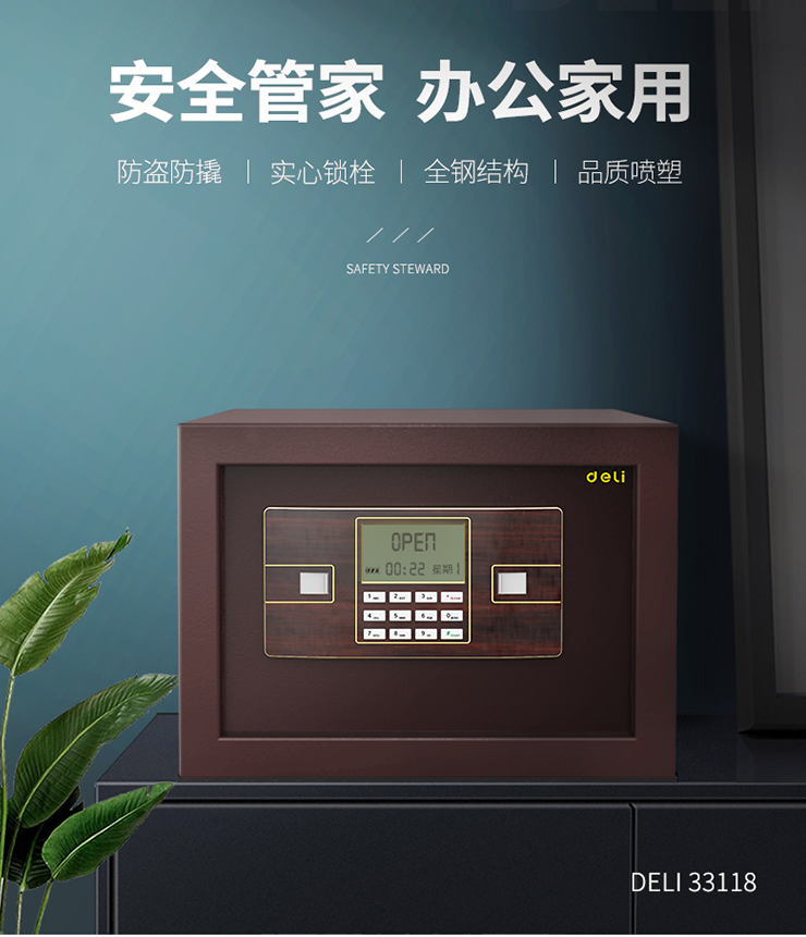 得力(deli)保险柜 高25CM加深型入墙入柜保管箱 小型家用办公保险箱 锐剑33118