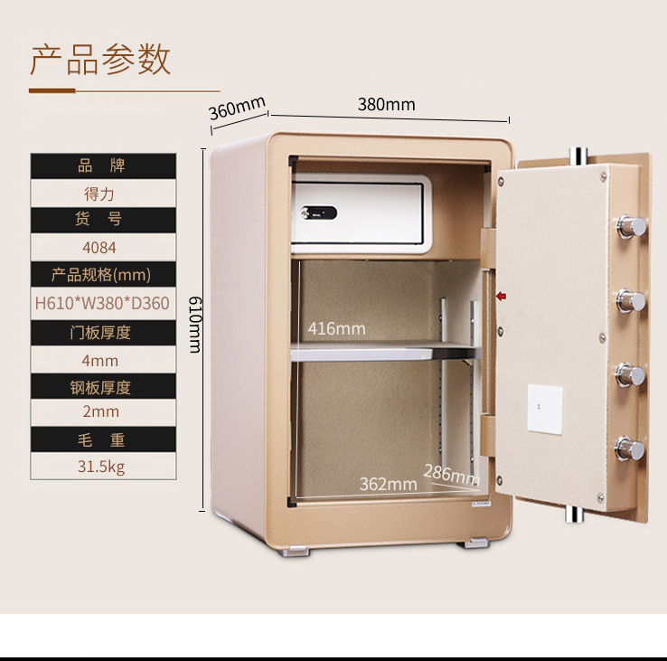 得力(deli)保险柜 高60CM全钢防盗保管柜 办公家用密码保险保管箱 锦腾4084