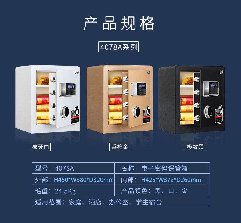 得力(deli)4078A指纹保险柜 密码款 45cm黑色