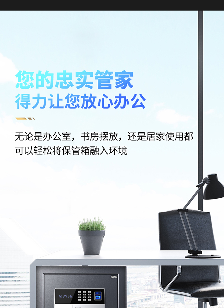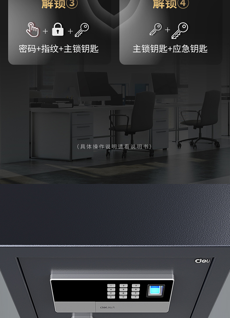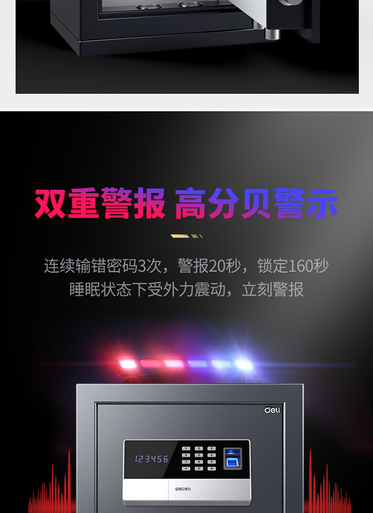 得力(deli)保险柜高80CM指纹密码保险保管柜办公室防盗嵌入式高分贝报警保管箱4074
