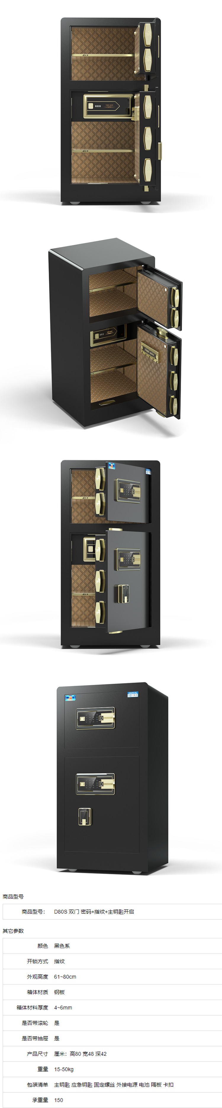 虎牌 双门密码指纹保险柜 D-80S