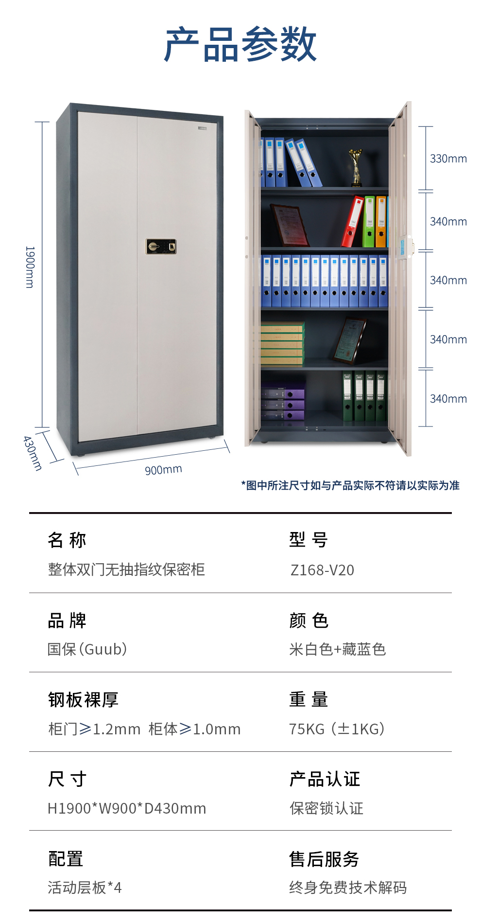 国保保密柜电子指纹密码锁文件柜五层无抽屉大型办公文档柜保险柜国家保密涉密认证全钢板加厚资料柜Z168-V20