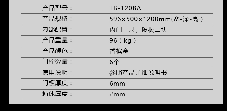 铁豹 TB-120BA 防盗保险柜 596*500*1200mm