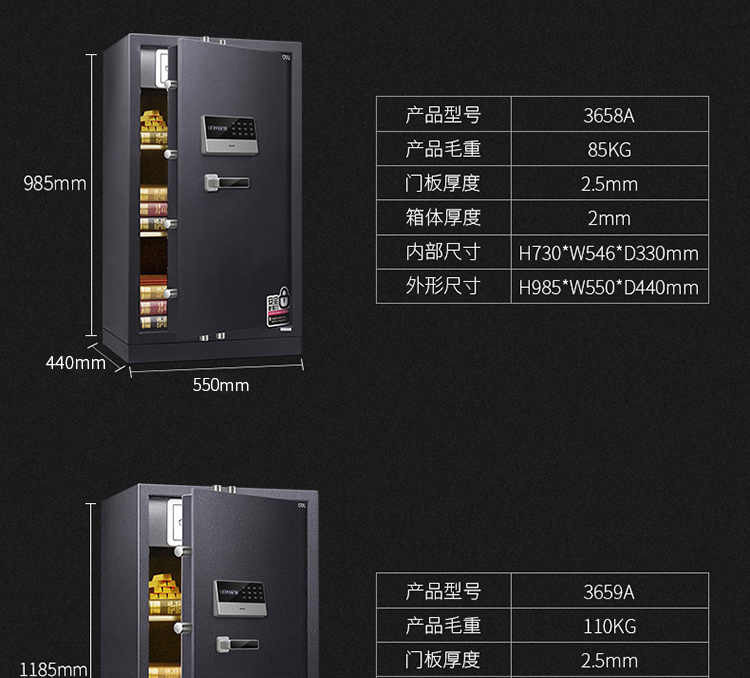 得力(deli)保险柜 高100CM电子密码大型家用办公保管柜 可入墙保管箱大型加厚防盗全钢保密柜3658A
