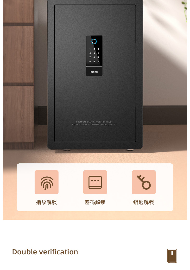 得力(deli)保险柜 高60cm半导体指纹+密码双重防盗自动开门保险箱保管箱 办公居家精品保险箱保管箱致雅27323