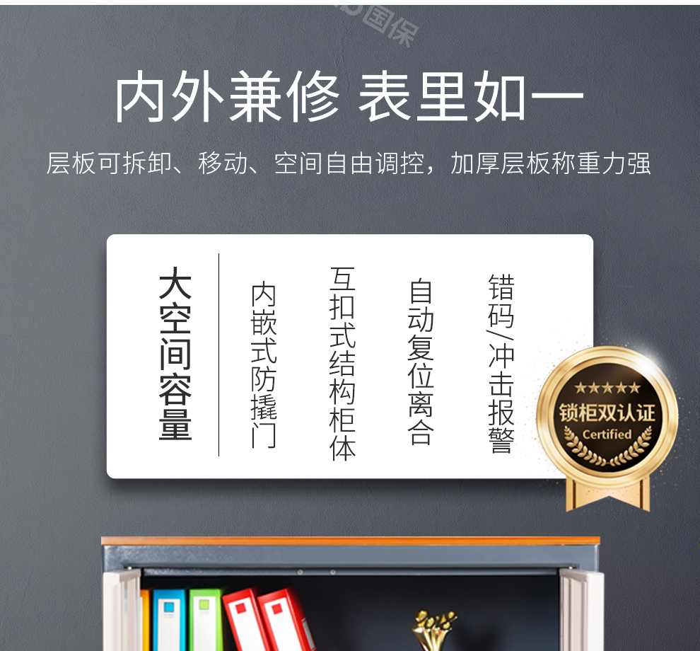 国保保密柜Z1办公文件柜 双人合开指纹密码锁文档柜保险柜保密认证资料柜半截矮柜加厚钢板员工柜Z158-Z1pro