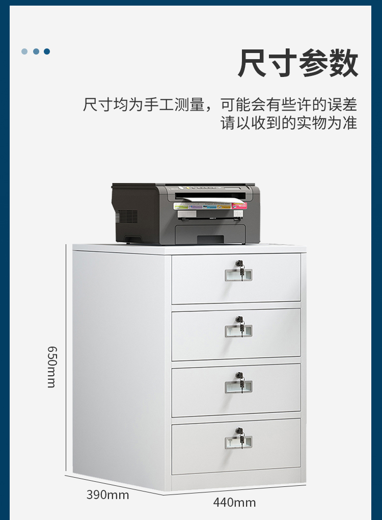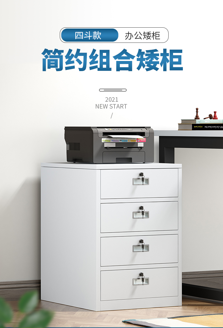 五羊泰 文件柜 四斗柜白色 44*39*65cm 办公柜矮柜抽屉钢制铁皮档案柜