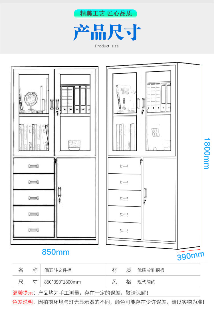 五羊泰文件柜 180*85*39cm 偏五斗办公柜 钢制铁皮柜资料柜档案柜储物柜