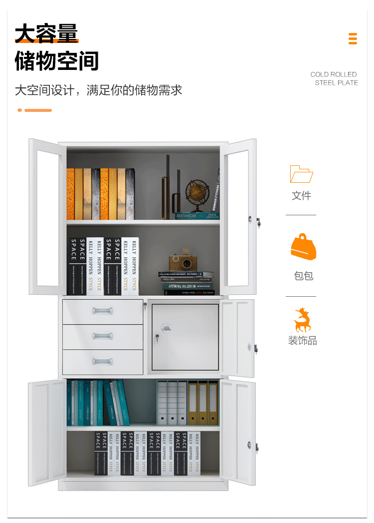 五羊泰文件柜 偏三斗办公柜 85*39*180cm 钢制铁皮柜资料柜档案柜储物柜