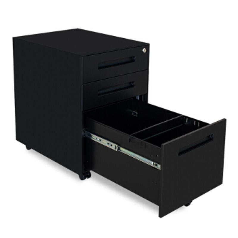 洛克菲勒 LUO KE FEI LE 三抽屉长拉手黑纱纹铁皮柜(带锁)黑色 600×407×520MM
