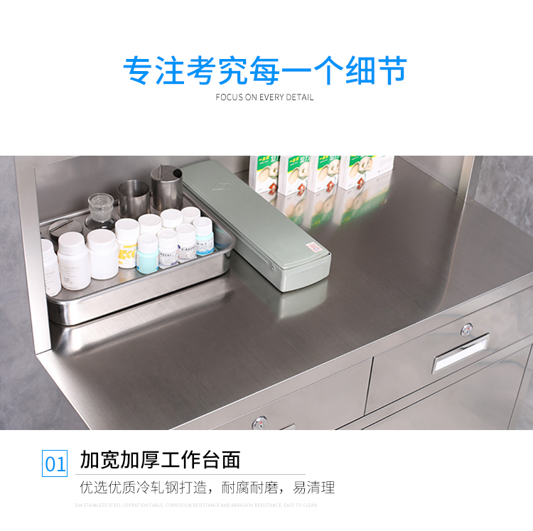 德致商成 器材柜 DJQCG01-73BXGW 普通西药柜 不锈钢台面 无柜门 三斗