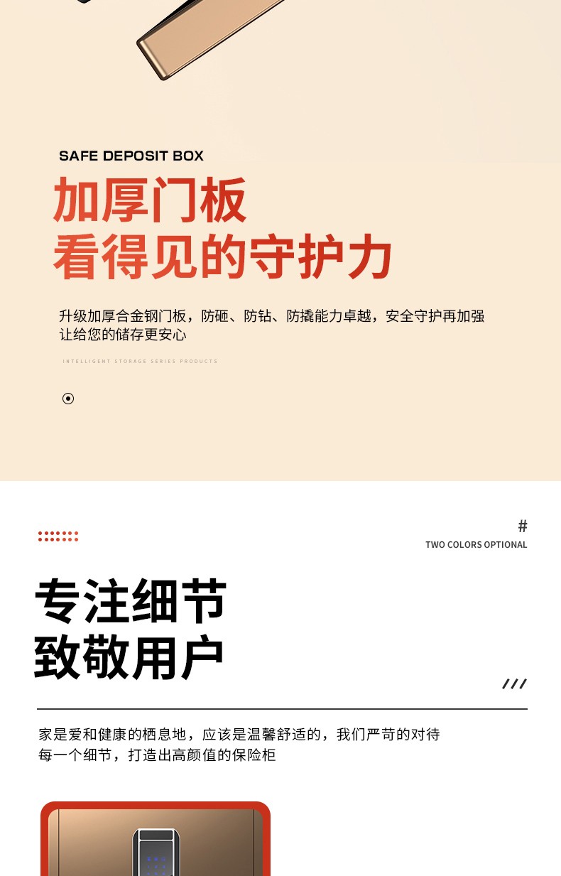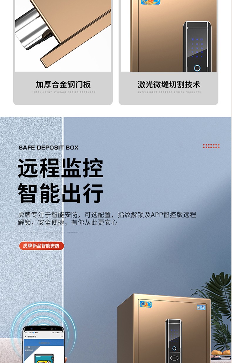 虎牌保险柜全钢防盗办公家用保险箱45/60/80cm大型1米1.2米1.5米1.8米小型指纹/密码锁 高45cm睿智黑 指纹款(钥匙/密码/指纹解锁)