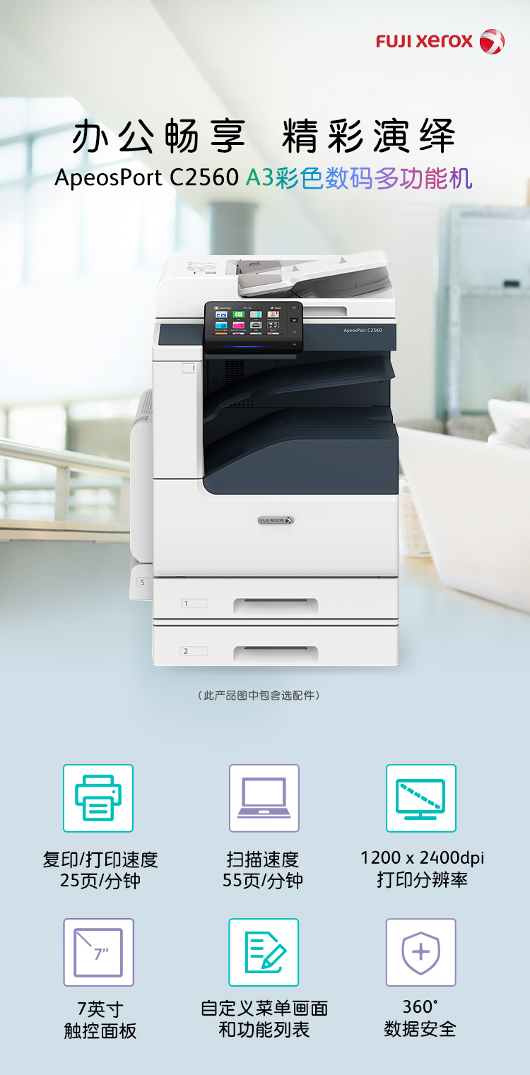 富士施乐(Fuji Xerox)ApeosPort C2560 CPS 2Tray 彩色激光复合复印机(双纸盒+双面器+自动输稿器+USB组件+工作台+保修一年)