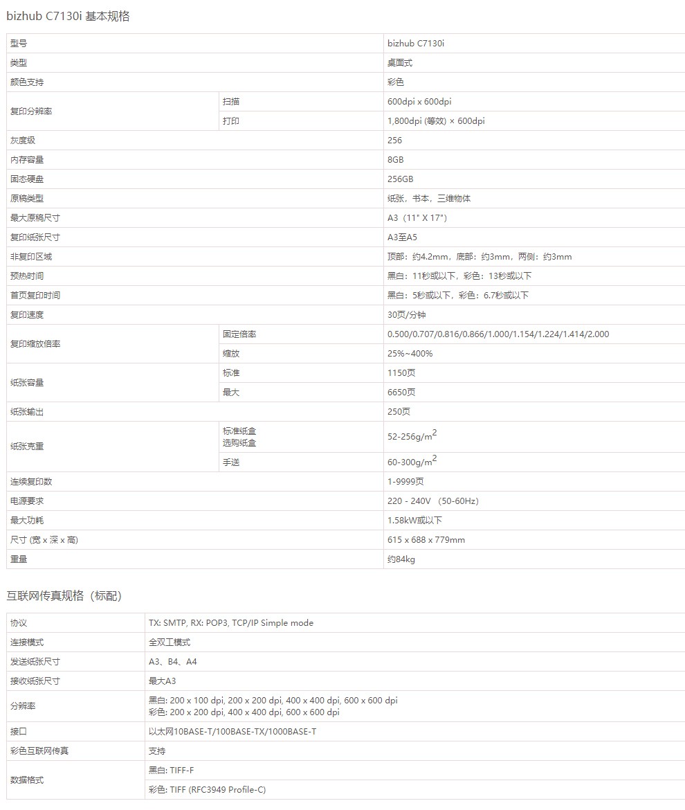 商品品牌:柯尼卡美能达/KONICA MINOLTA 商品货号:bizhub C7130i 商品库存:10