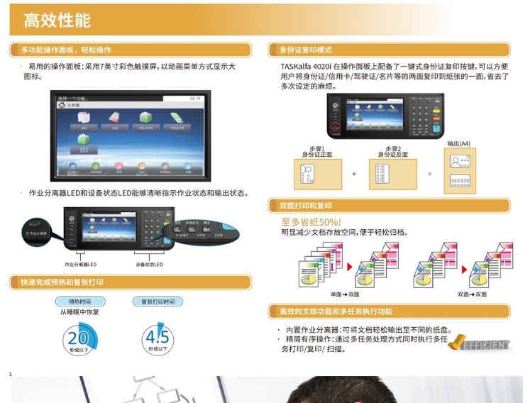 | 说明 | A3幅面,打印复印速度:40页/分钟,扫描速度:50页/分钟,内存:标配1GB(选购3GB),硬盘:选购(32GB/128GB),供纸能力:1*500张(纸盒)+100张(手送)+PF-4200(500张),控制面板:7英寸LCD面板,打印分辨率:1200dpi*1200dpi,墨粉组件:TK-6138。 |