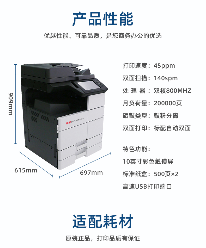 奔图(PANTUM)M9006DN A3黑白激光复合机(打印/复印/扫描/传真)A