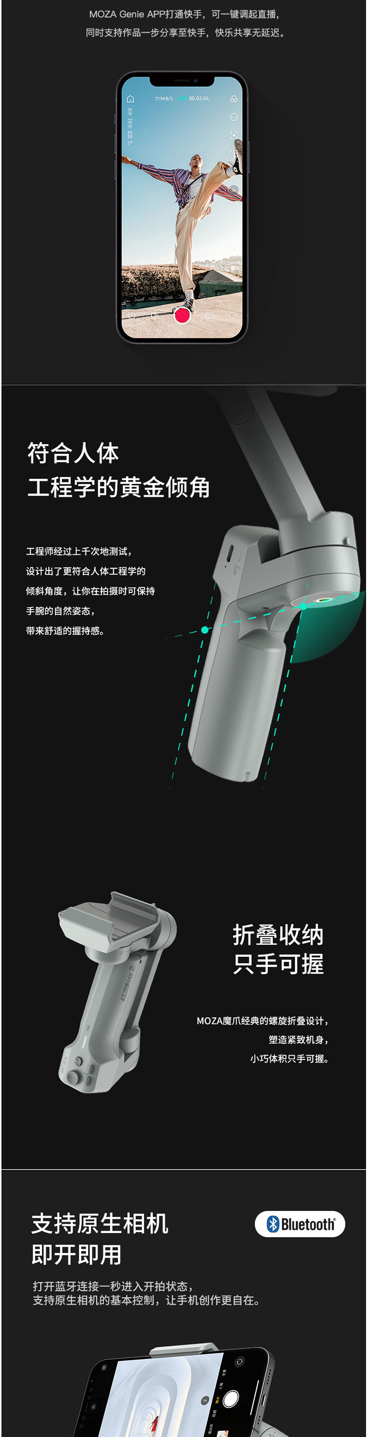 魔爪(MOZA)智能感应手机稳定器 Mini MX 2手持云台稳定器 电动开合专业防抖支持原生相机 折叠收纳带三脚架