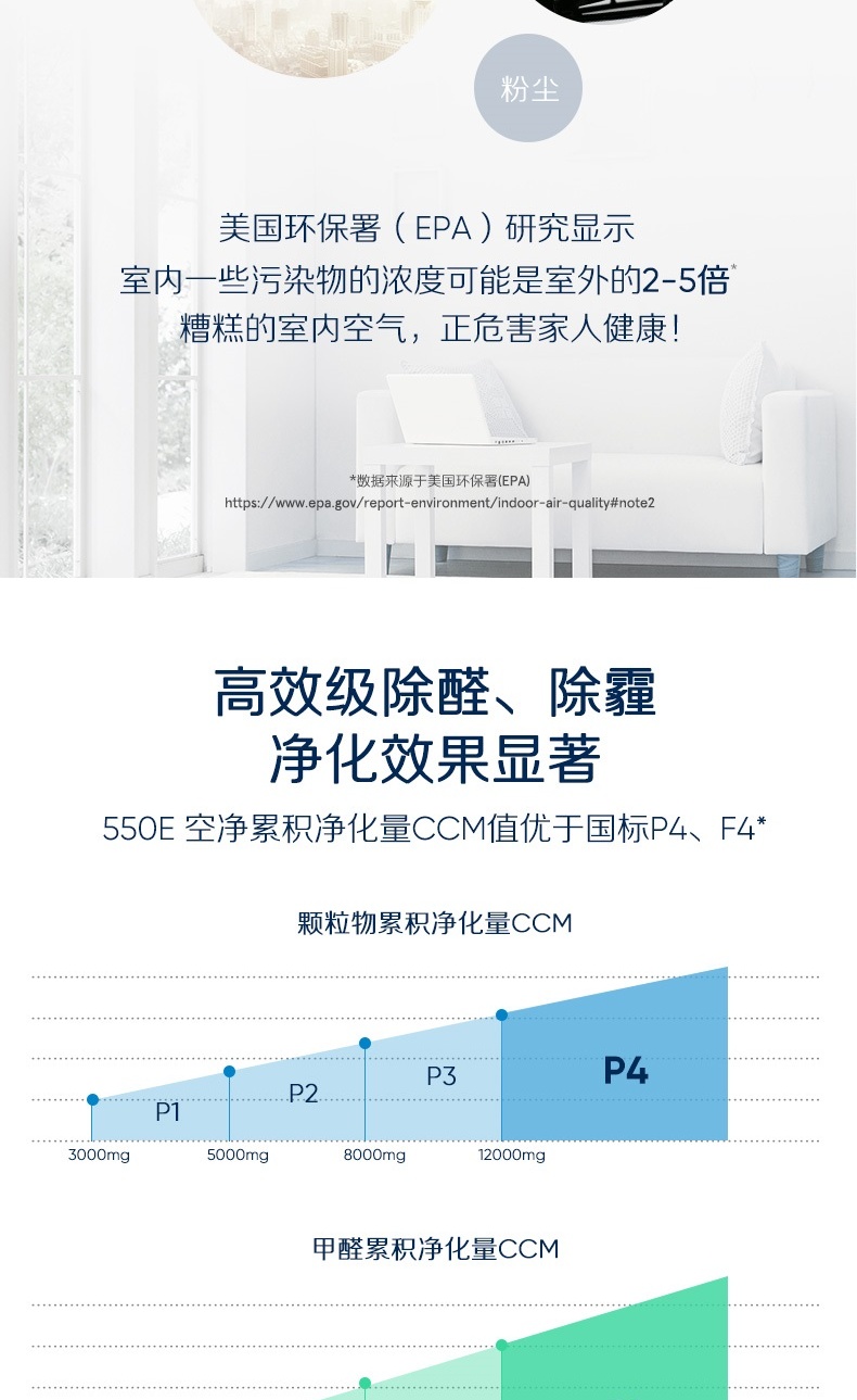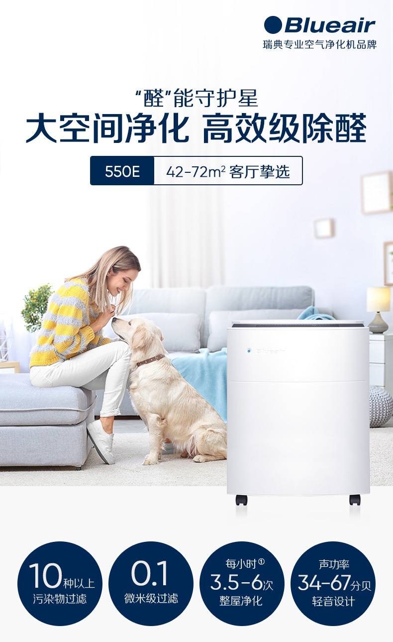 布鲁雅尔(Blueair) 线下同款家用室内空气净化器 除甲醛除雾霾PM2.5除花粉二手烟 550E