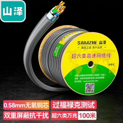 山泽(SAMZHE) 超六类双屏蔽网线 CAT6A类工程家装万兆网络宽带线 抗干扰降衰减纯铜线 灰色100米 HC6100