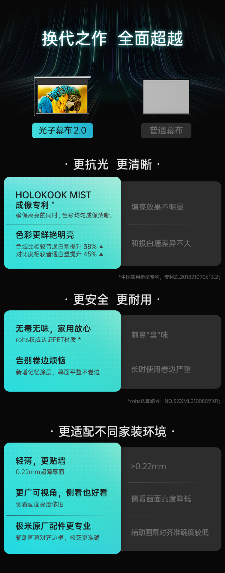 极米(XGIMI )100英寸16:9遥控电动光子幕布2.0(更大可视角度 卷边自动恢复 画面更亮更好看)