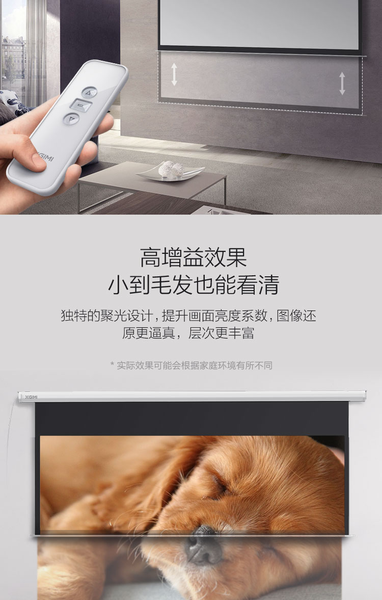 极米 (XGIMI)100英寸16:9遥控电动幕布P140S(无线遥控 高增益效果 超广视角 漫反射成像)