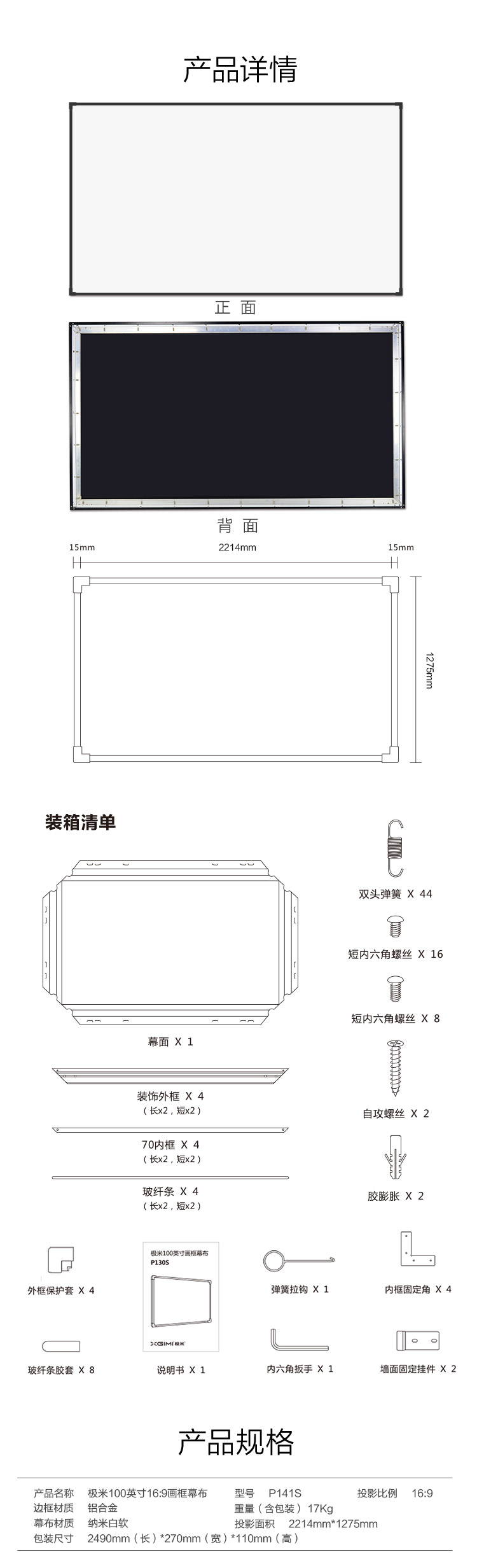 商品品牌:极米 商品货号:极米100英寸16:9画框幕布 商品库存:10