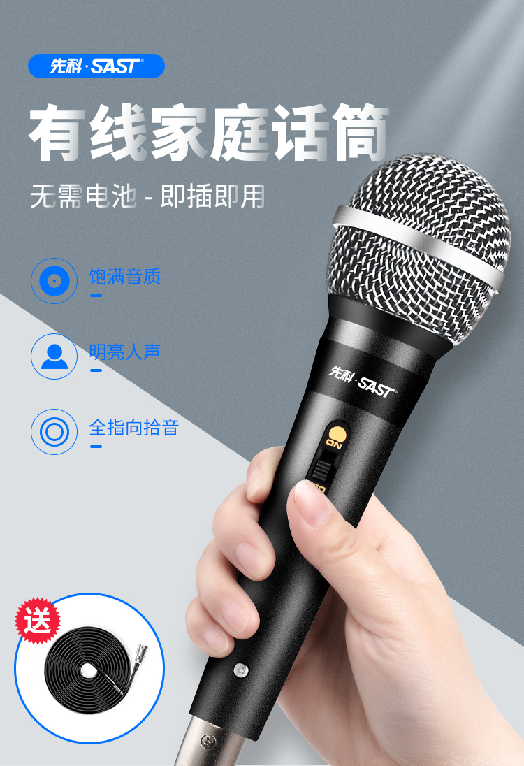 先科 SAST OK-65 有线话筒麦克风 会议演讲专用动圈麦家庭KTV演唱卡拉OK