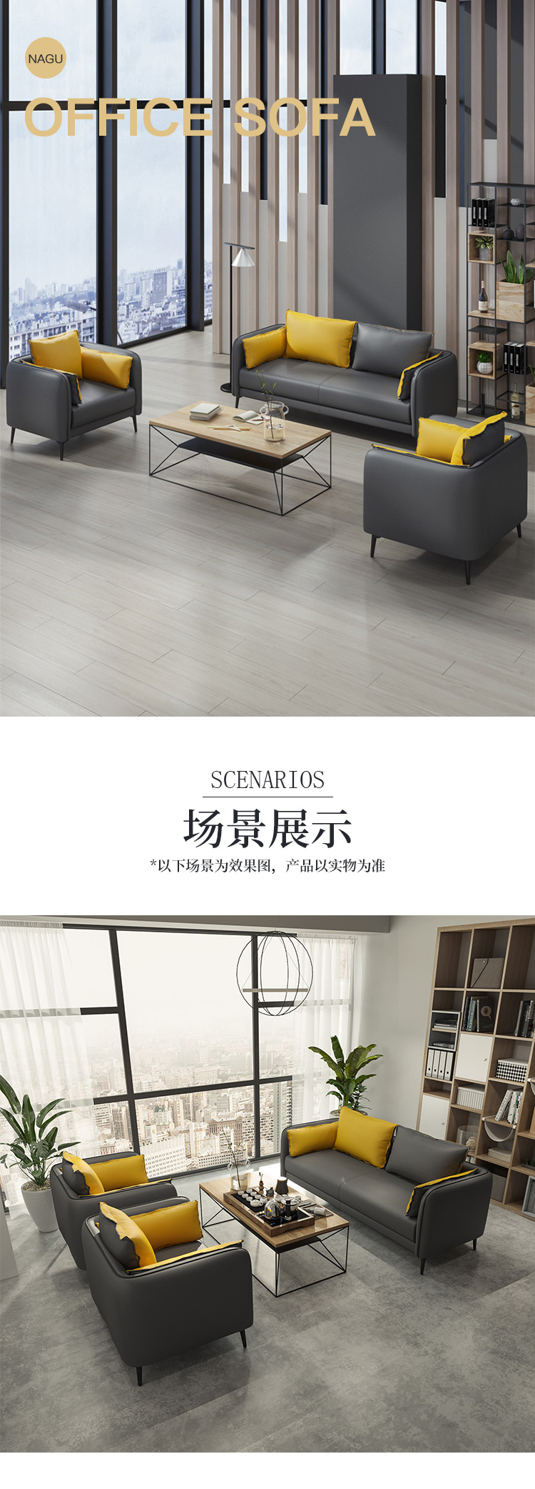 办公沙发商务简约经理沙发 会客洽谈室接待室 【三人位皮沙发西皮】长190cm;宽75cm;高80cm