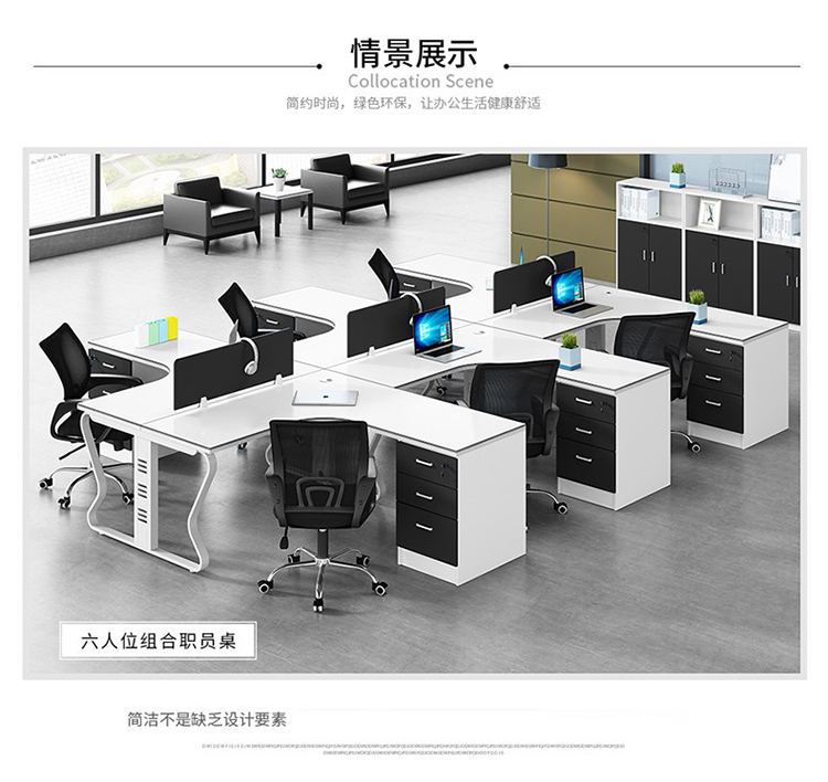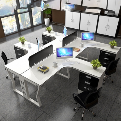 办公桌组合办公家具屏风隔断卡座员工桌2/4人位职员办公桌简约现代四人工位 办公桌椅【L型台面出字型四人位带柜】长宽高:240*280*75cm