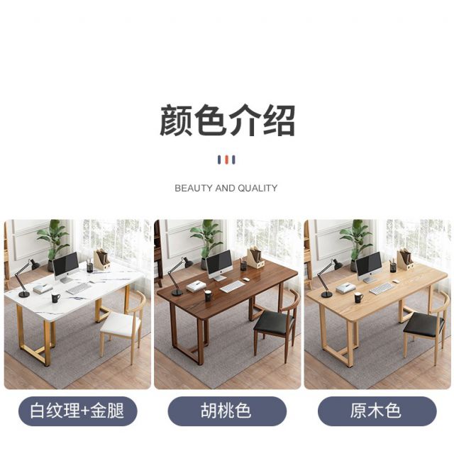 办公桌家用简易台式电脑桌子长方形办公室卧室书桌简约学生写字桌 【140*70*75CM桌含椅】白纹理+金色