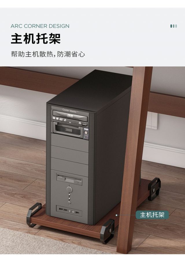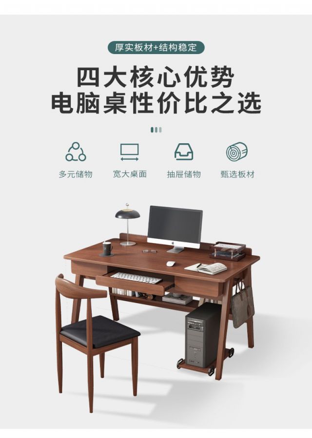 电脑桌台式双层置物单人简约现代经济办公室简易桌子 【120*55*82CM 升级款不含椅】橡胶木色