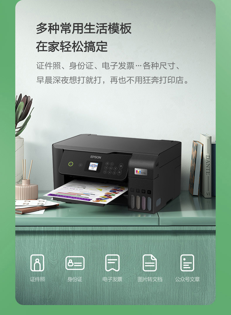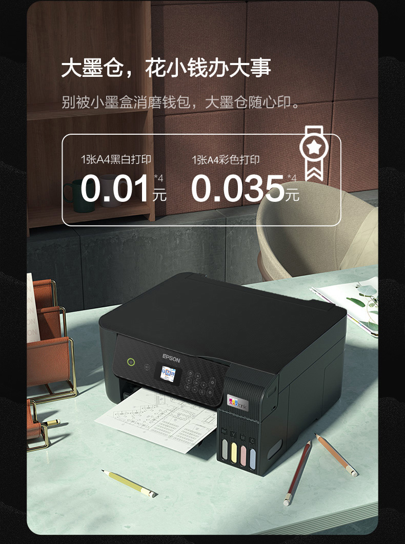 爱普生(EPSON)墨仓式L3268 微信打印/无线连接 打印复印扫描一体机