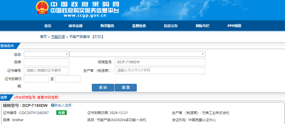 认证型号 :   DCP-7190DW