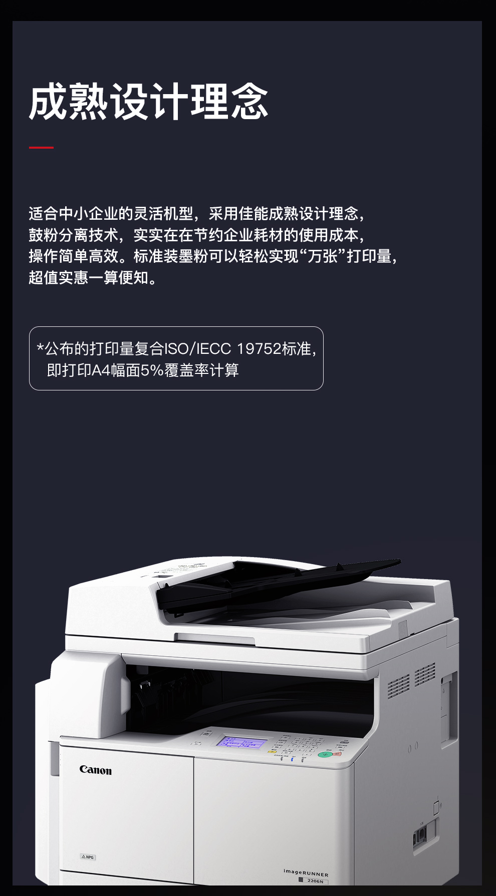 佳能(Canon)大型打印机iR2206AD 商用办公a3a4黑白复合复印机含输稿器(打印/复印/扫描/WiFi)上门服务